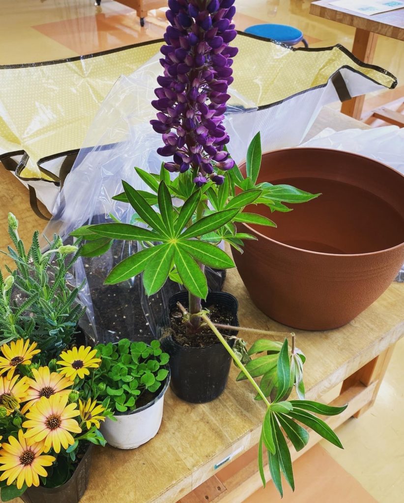 土や花、水やりについて詳しく教えていたいただいた後、好きなお花を選んで寄せ植えしていきました。